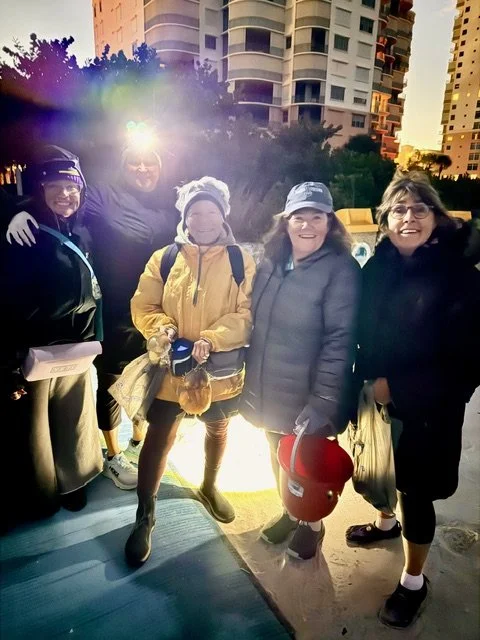 The Marco Island Shell Club finds its happy place on the beach at sunrise. Either after a good storm with new shells or after the normal high and low tides which bring these treasures from the sea to our baskets. This view shows a fogbow over Keewaydin Island. A fogbow is a rare weather phenomenon that appears as a white arc or circle of light in foggy conditions. Similar to a rainbow, it’s created by sunlight interacting with water droplets, but in fog instead of rain.